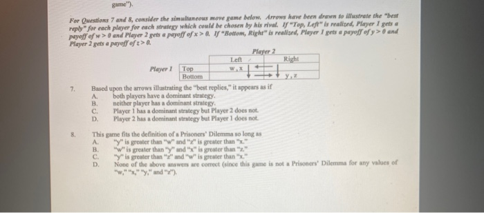 Solved Game For Questions 7 And 8 Consider The Simultaneous Chegg Com